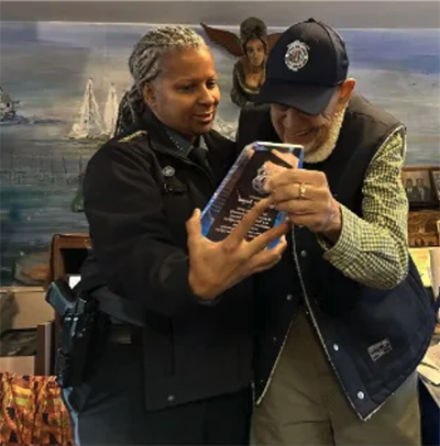 Chief Awad recalled Mr. Keyes’ charisma, quick wit, and generosity, sharing afternoons listening to stories of his military service, teaching, art, love of plants, and insights on history and culture. “In March 2024, Mr. Keyes was sworn in as an Honorary Anne Arundel County Police Officer,” Chief Awad stated.