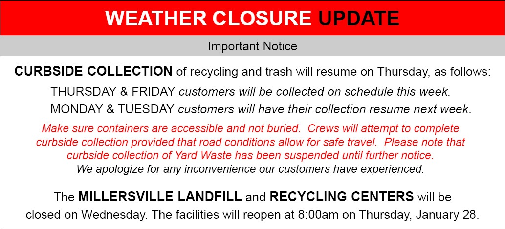 The County website is predicting that we will not have curb side trash removal until Monday.
