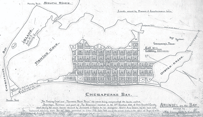 The story of Arundel-on-the-Bay started in 1890, with the purchase of 350 acres south of Annapolis, Md., on the Chesapeake Bay, America’s largest estuary. Lots on this waterfront land acquired by the Chesapeake & Colombia Investment Company were advertised for sale based on the beauty of the site and its solitude as a woodland paradise.